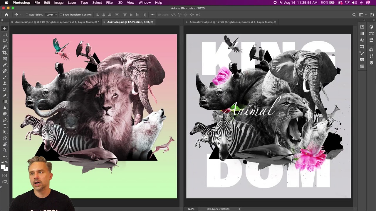 These 2 surreal portraits, created via Adobe Photoshop, depict humans on a cliffside coming face to face with giant elephants in an outer space environment. For each surreal portrait, I was inspired by existing surreal portrait that combined humans with giant animals. Using multiple images to create a scene that seamlessly blends together different objects that usually do not go together, I used various Photoshop lighting and color tools to adjust the objects to make it feel as surreal as possible.
